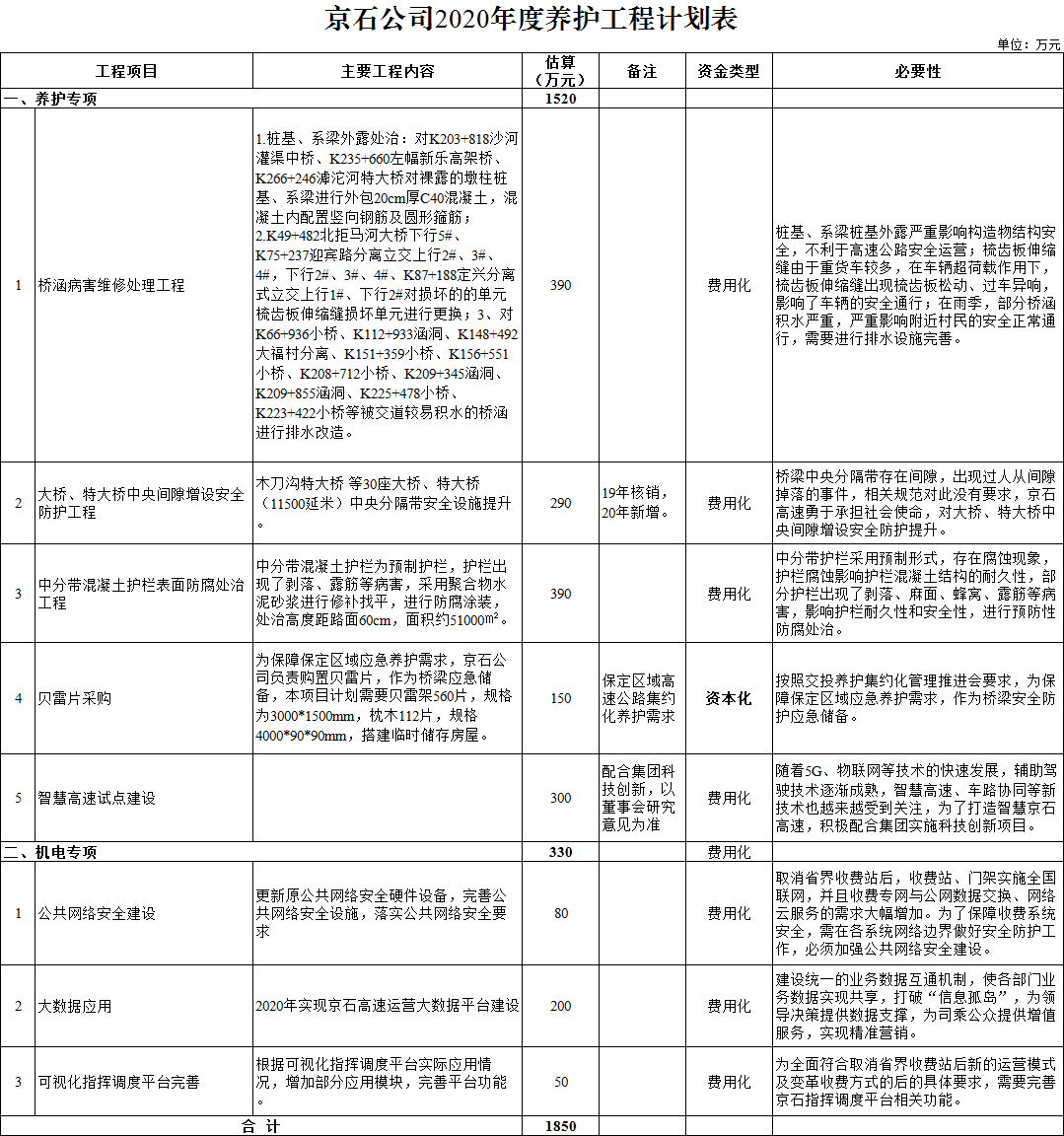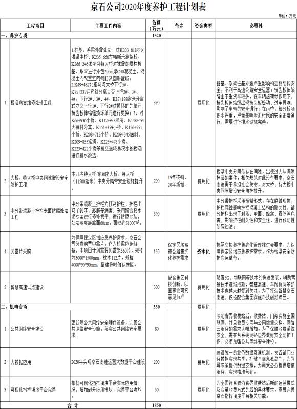 2020年度京石高速養(yǎng)護(hù)工程計(jì)劃