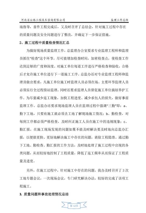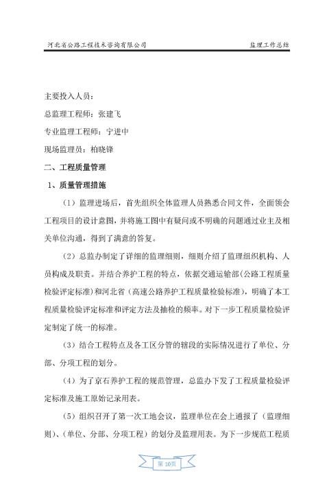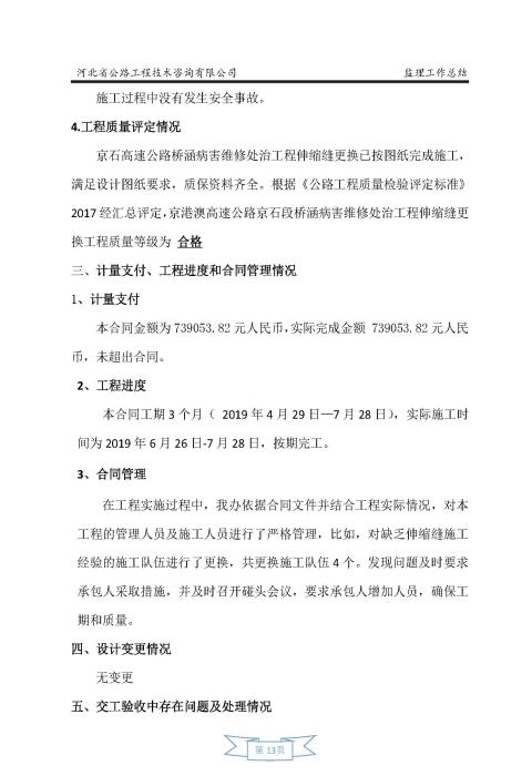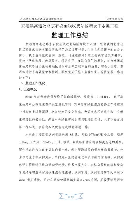 全線收費站區(qū) 增設(shè)中水池工程監(jiān)理報告