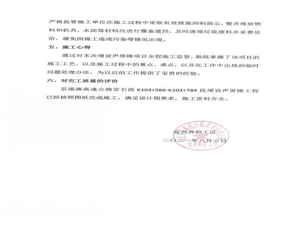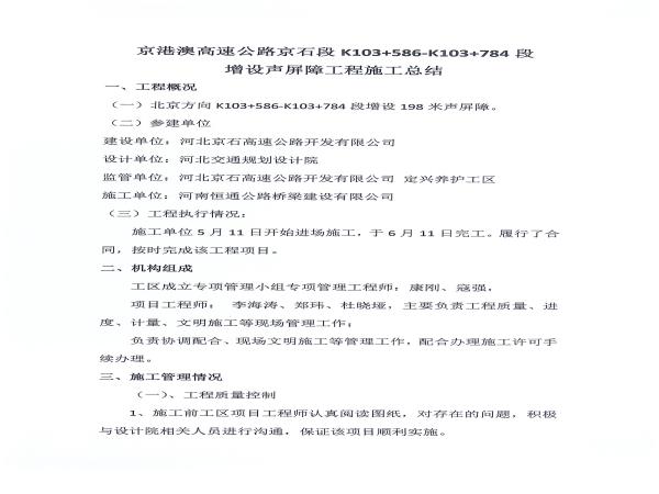 京港澳高速公路京石段K103+586-K103+784段增設(shè)聲屏障工程施工總結(jié)