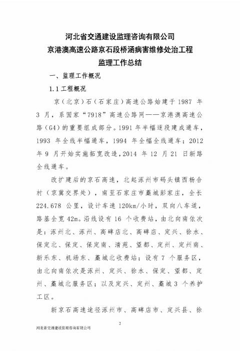 橋涵病害維修處治工程監(jiān)理報(bào)告