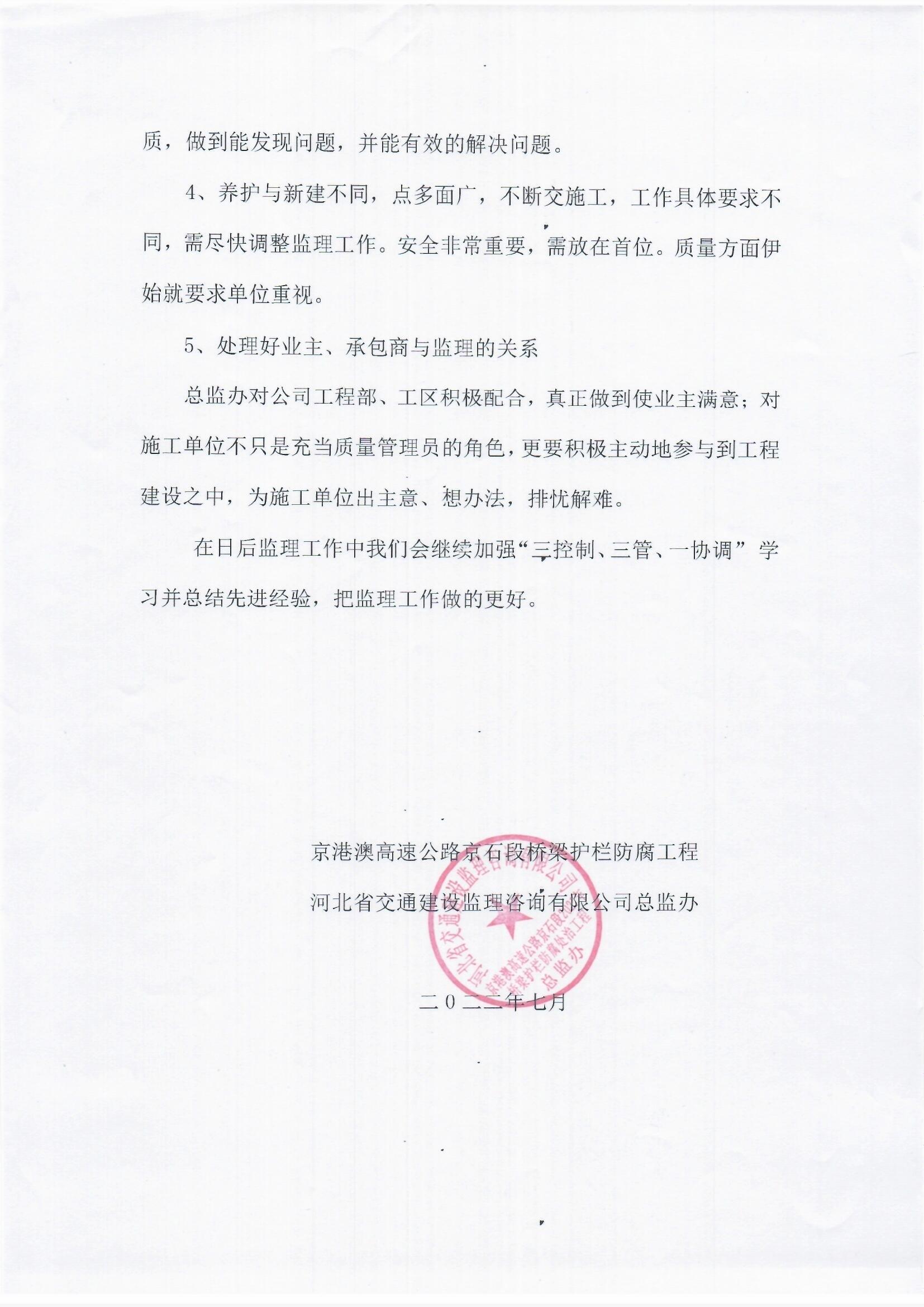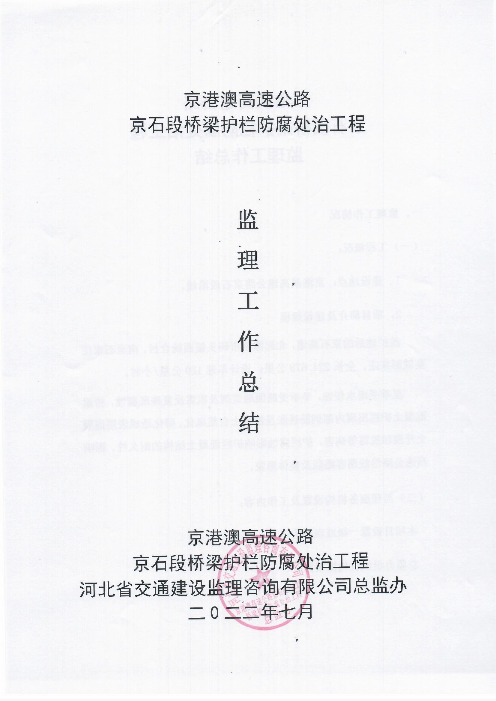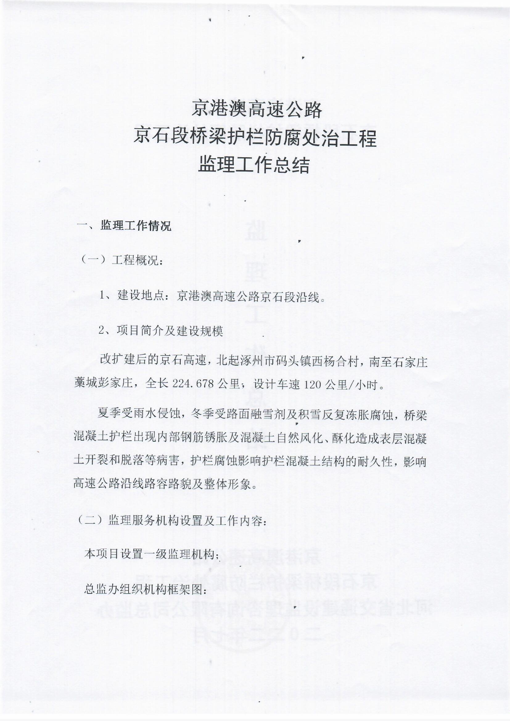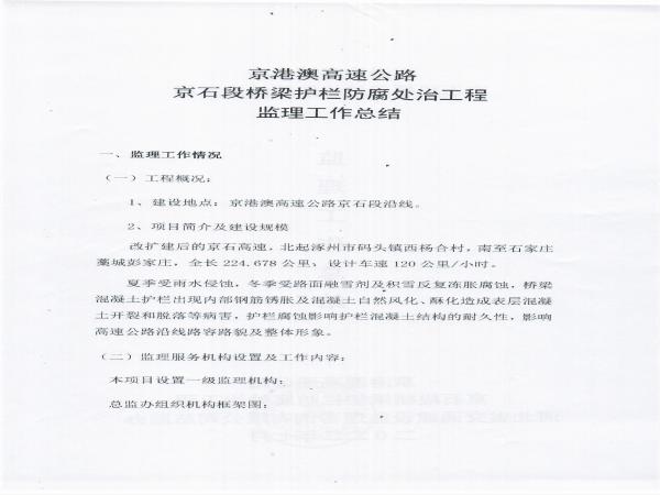 京港澳高速公路京石段2022年橋梁護欄防腐處治工程監(jiān)理報告