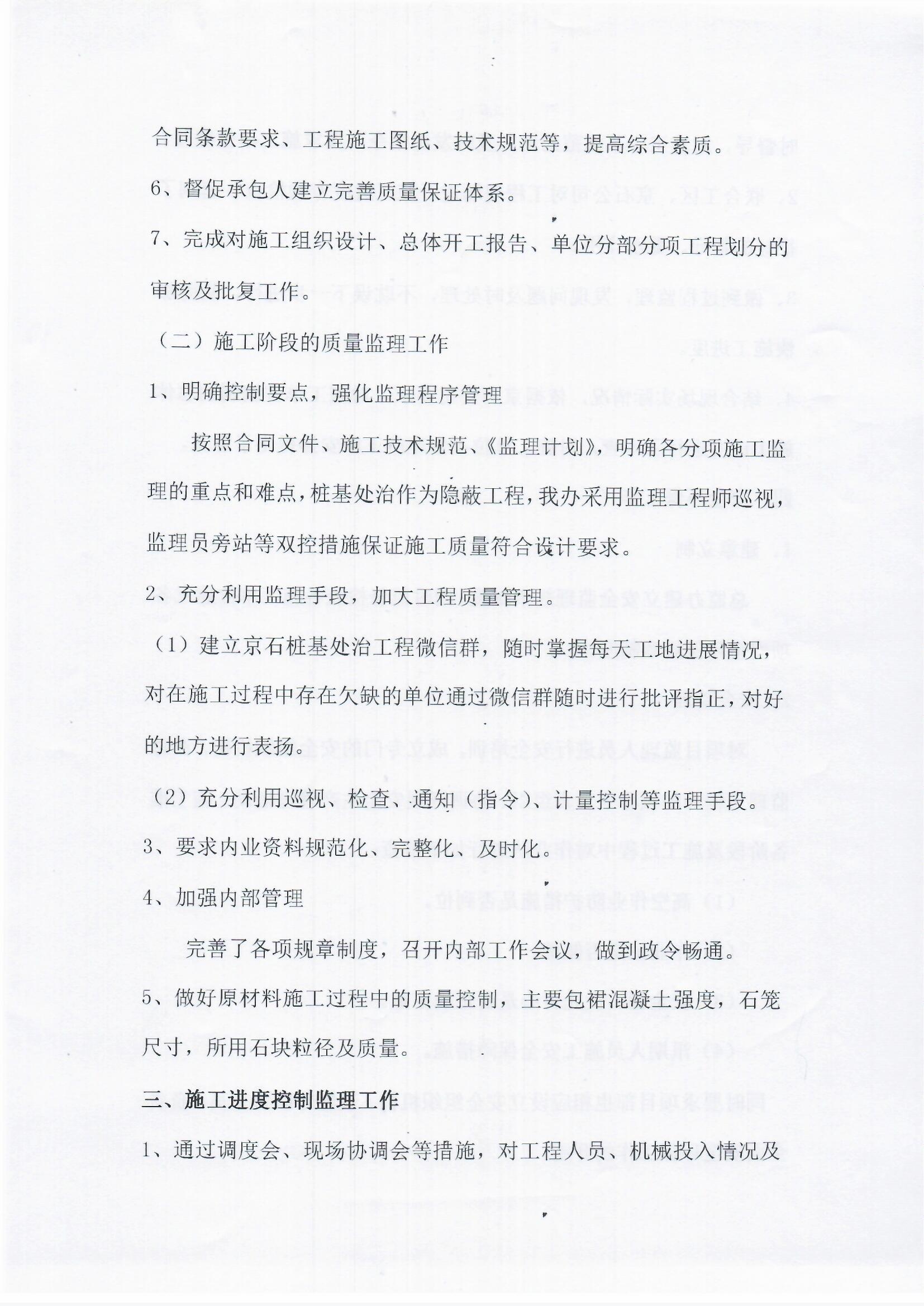 京港澳高速公路京石段沙河特大橋樁基防護(hù)處治工程監(jiān)理報(bào)告