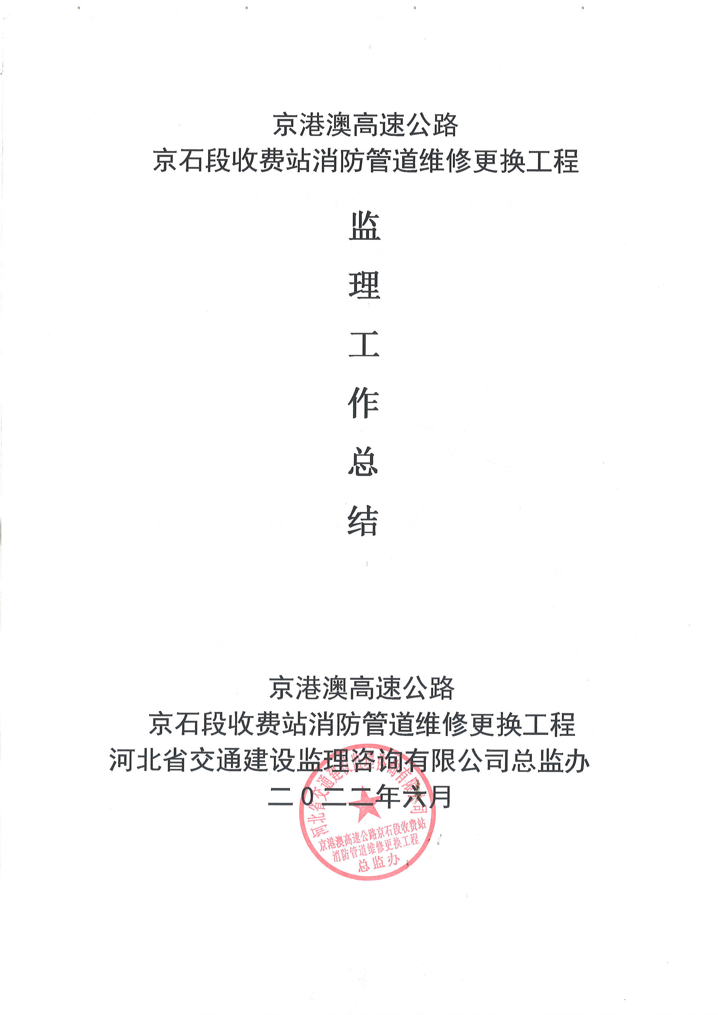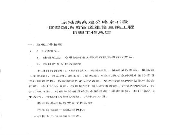 2022年京港澳高速京石段收費站消防管道維修更換工程監(jiān)理工作總結(jié)