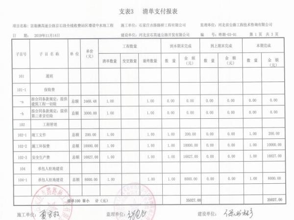 京港澳高速公路京石段全線收費(fèi)站區(qū)增設(shè)中水池工程支付證書(shū)
