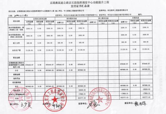 京港澳高速公路京石段指揮調(diào)度中心功能提升工程支付證書