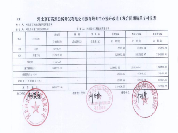 河北京石高速公路開發(fā)有限公司教育培訓(xùn)中心提升改造工程四期支付證書