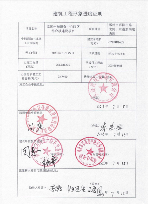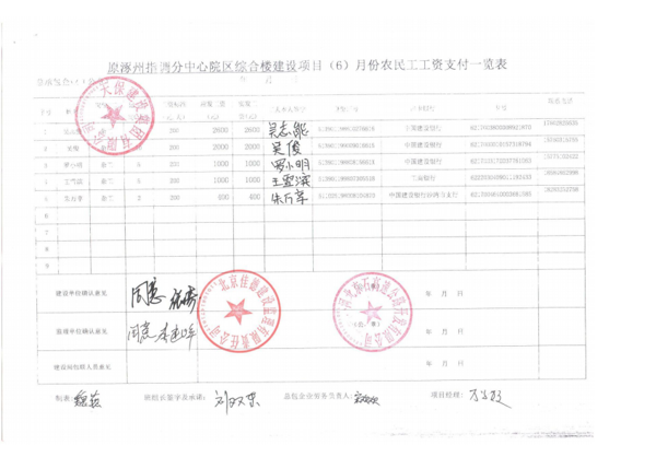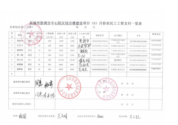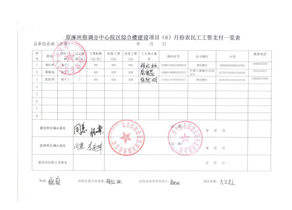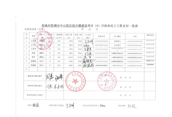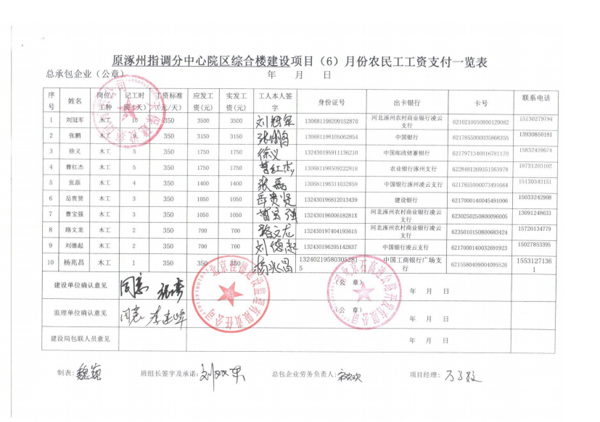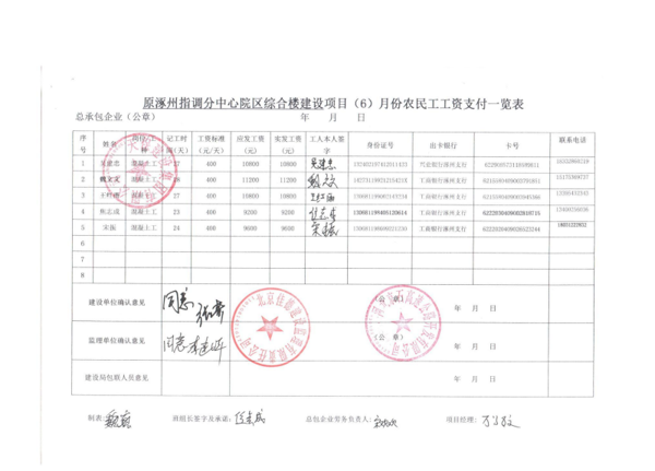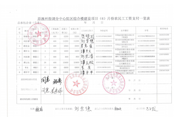 原涿州指調分中心綜合樓建設項目6月份農民工工資發(fā)放公示