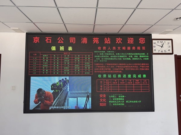在收費(fèi)站辦公區(qū)、宿舍等顯著位置張貼宣傳海報(bào),海報(bào)內(nèi)容涵蓋總體國(guó)家安全觀的內(nèi)涵、危害國(guó)家安全的行為等,以直觀的畫(huà)面和簡(jiǎn)潔的文字吸引過(guò)往人員的關(guān)注。利用單位大屏幕滾動(dòng)播放國(guó)家安全宣傳視頻,向職工和來(lái)訪(fǎng)人員普及國(guó)家安全知識(shí),加深了大家對(duì)國(guó)家安全的理解。
