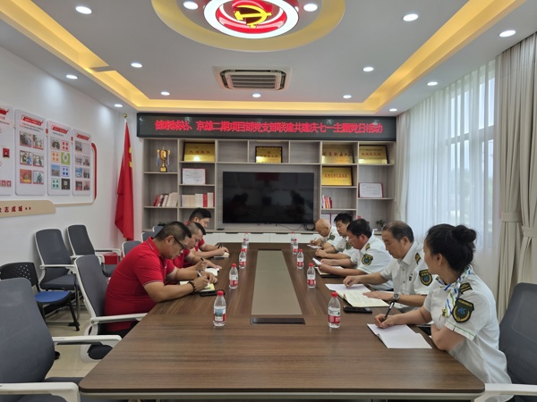 活動由健康城站黨支部書記開場致辭,介紹活動背景與意義,強調(diào)安全注意事項;隨后的黨史學習環(huán)節(jié),通過支部書記講解的形式,帶領(lǐng)黨員們回顧黨的光輝歷程,激發(fā)愛黨愛國情懷。黨史學習后,兩支部圍繞京雄二期施工車輛超限超載治理問題展開專題研討。黨員們結(jié)合健康城站與京雄二期項目的實際工作場景,深入分析當前治理工作中存在的難點進行研討,旨在通過黨建引領(lǐng),凝聚治理合力,筑牢安全防線。最后,全體黨員與作品合影留念,定格這一意義非凡的時刻。