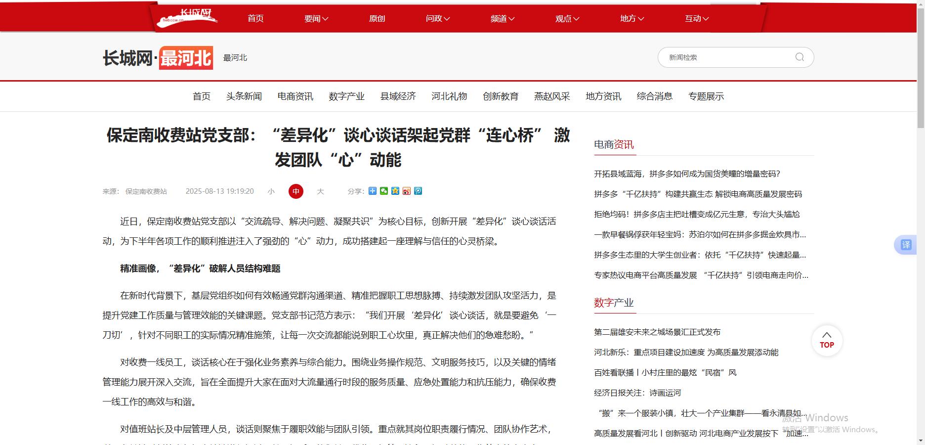 【長(zhǎng)城網(wǎng)最河北】保定南收費(fèi)站黨支部:“差異化”談心談話(huà)架起黨群“連心橋” 激發(fā)團(tuán)隊(duì)“心”動(dòng)能