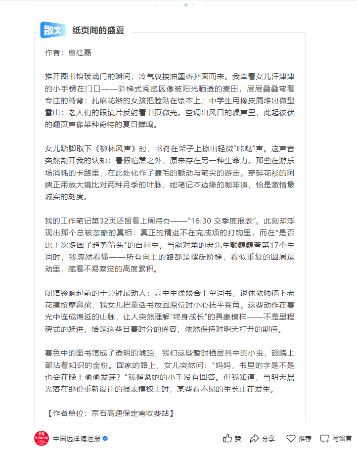 【中國遠(yuǎn)洋海運(yùn)報(bào)】紙頁間的盛夏