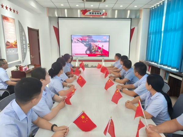 上午8點45分,公司各部室、所屬各單位干部職工提前抵達(dá)會議室,滿懷激動與期待之情,靜候直播開始,等待著這一展現(xiàn)國家繁榮昌盛、人民軍隊威武雄壯的難忘瞬間。在觀看過程中,各單位會場秩序井然,職工神情專注,不少同志認(rèn)真記錄動人畫面,公司各觀看現(xiàn)場不時爆發(fā)出陣陣掌聲。