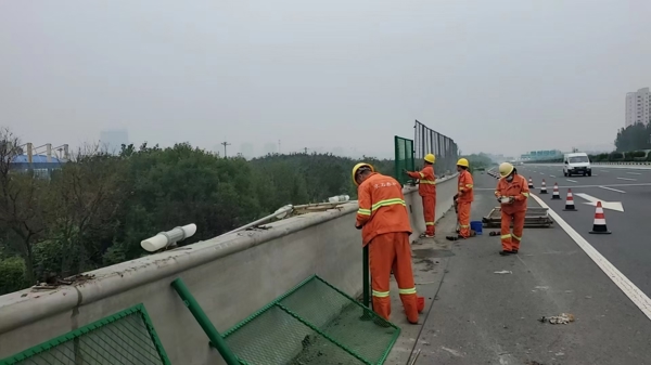 養(yǎng)護(hù)人員分組、分區(qū)段、分項(xiàng)目對轄段內(nèi)沿線標(biāo)志標(biāo)牌、交通標(biāo)線、護(hù)欄、聲屏障及防眩設(shè)施等交安設(shè)施進(jìn)行了勘查,并且對收費(fèi)站引線、橋梁被交道的交安設(shè)施進(jìn)行了全面檢查。對于沿線護(hù)欄板防阻塊變形或缺失、螺栓及墊片缺失、搭接不規(guī)范等重點(diǎn)問題加大排查整改力度,及時(shí)修復(fù)中央帶防眩網(wǎng),緊固標(biāo)志標(biāo)牌的螺絲、螺栓,清洗擦拭臟污的標(biāo)志標(biāo)牌,及時(shí)補(bǔ)充粘貼反光標(biāo)志,確保交安設(shè)施清晰、醒目。