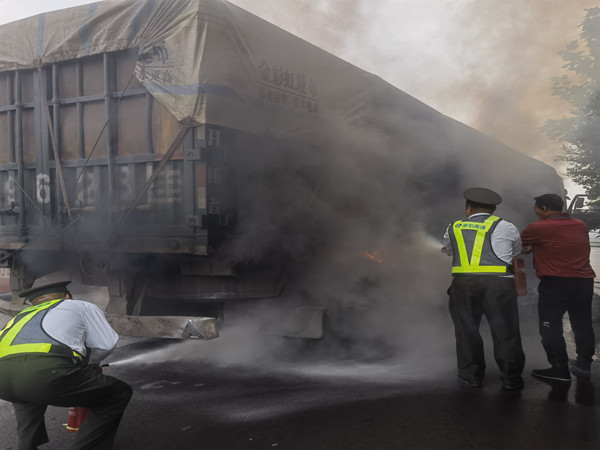 “老吳!快拿滅火器,有車著火了!”收費(fèi)員邢毅對(duì)講機(jī)里喊道,只見他手拎滅火器立即向外廣場(chǎng)奔去。 10月4日上午10點(diǎn)40分左右,正值節(jié)假日出行車流高峰時(shí)段,在藁城北收費(fèi)站出口外廣場(chǎng)與國道的交接處,一輛滿載煤炭的六軸重型貨車突然發(fā)生自燃。司機(jī)跑到收費(fèi)站尋求幫助,收費(fèi)員邢毅和吳國忠沒有一絲猶豫,迅速攜帶滅火器趕赴現(xiàn)場(chǎng),在確保自身安全的前提下,對(duì)著火點(diǎn)展開滅火,為后續(xù)專業(yè)救援爭(zhēng)取寶貴時(shí)間。據(jù)司機(jī)描述,剛發(fā)現(xiàn)冒煙就趕緊停車查看,誰知停好車這火苗就竄起來了。