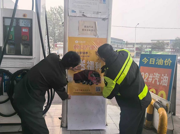 隨后,引流小組在海油加油站現(xiàn)場設(shè)立宣傳點,向過往加油的貨車司機(jī)們積極宣傳“冀交萬里行”貨車營銷活動。工作人員通過發(fā)放宣傳彩頁、現(xiàn)場講解、手把手指導(dǎo)注冊等方式,耐心向司機(jī)師傅們介紹小程序的注冊流程及使用方法,讓大家直觀感受到各項福利政策。同時,引流小組還重點推廣了“空車配載”服務(wù),詳細(xì)解釋了該服務(wù)如何幫助司機(jī)快速匹配貨源、減少空駛里程、增加運輸收入,實現(xiàn)“貨找車、車找貨”的高效匹配,真正做到“一站直達(dá)”的高效物流體驗。