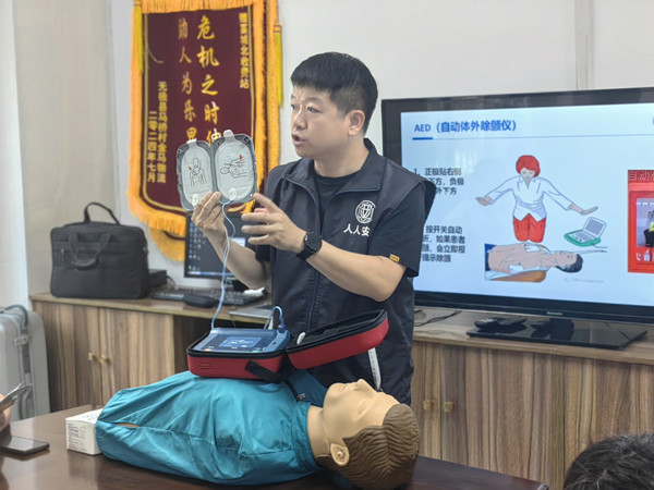 講座特邀安全健康教育網(wǎng)河北站宣教科科長解云龍擔(dān)綱主講。不同于傳統(tǒng)講座的單向輸出,解科長將智能教具與情景模擬深度融合,打造沉浸式學(xué)習(xí)場景。現(xiàn)場救護(hù)與AED使用方法教學(xué)環(huán)節(jié)將講座推向高潮。解科長利用專業(yè)模擬人教具和自動(dòng)體外除顫器(AED)設(shè)備,通過“理論講解+分步演示+實(shí)操訓(xùn)練”三位一體的教學(xué)模式,詳細(xì)介紹心肺復(fù)蘇的操作流程與關(guān)鍵要點(diǎn)。他強(qiáng)調(diào),在心臟驟停的黃金四分鐘內(nèi),及時(shí)有效的心肺復(fù)蘇和AED使用是挽救生命的關(guān)鍵。職工們分組進(jìn)行實(shí)踐操作,解科長逐一指導(dǎo),糾正按壓深度、頻率及AED電極片粘貼位置等細(xì)節(jié)問題,確保每個(gè)人都能熟練掌握這兩項(xiàng)“救命技能”。“以前覺得急救很復(fù)雜,今天親身體驗(yàn)后,心里更有底氣了,以后遇到突發(fā)情況也知道該怎么做了。”一位參與實(shí)操的職工感慨道。