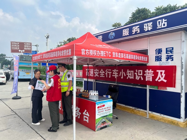 活動(dòng)現(xiàn)場(chǎng),定興站工作人員在站口設(shè)置了醒目且溫馨的宣傳臺(tái)和咨詢點(diǎn)。在炎熱的夏季為過(guò)往的司乘人員準(zhǔn)備了礦泉水、濕巾等防暑用品。考慮到夏季高溫天氣對(duì)高速行車的影響,工作人員著重開(kāi)展了夏季高速安全行車小知識(shí)普及活動(dòng)。從車輛輪胎的保養(yǎng)、發(fā)動(dòng)機(jī)的散熱,到高溫天氣下駕駛員的疲勞預(yù)防等方面耐心細(xì)致地為司乘人員講解,提醒他們注意夏季行車的安全隱患。