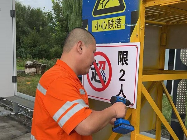 安全生產(chǎn)無(wú)小事,細(xì)微之處見(jiàn)真章。近日,高碑店站聚焦綠通驗(yàn)貨梯這一綠通查驗(yàn)高頻使用設(shè)施,扎實(shí)推進(jìn)安全生產(chǎn)細(xì)化工作,為驗(yàn)貨梯增設(shè)標(biāo)識(shí),通過(guò)增設(shè)“限載人數(shù)”標(biāo)識(shí),筑牢安全防線。