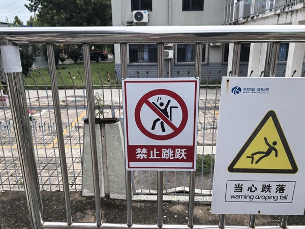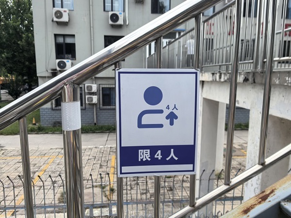 現(xiàn)場可見“限4人”標(biāo)識明確了樓梯同時承載的人員數(shù)量上限,防止因人員過度聚集引發(fā)樓梯荷載超標(biāo)問題;“禁止跳躍”標(biāo)識以醒目的圖案和文字,警示通行人員切勿在樓梯上做出跳躍等危險動作;“當(dāng)心跌落”標(biāo)識則時刻提醒大家注意腳下,防范跌落風(fēng)險。